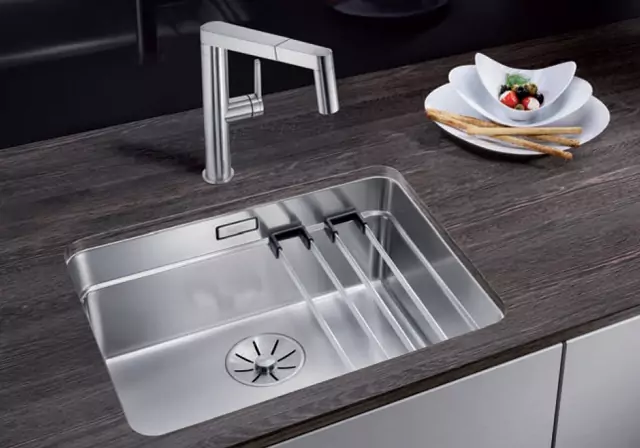 Измельчитель можно установить как в мойку с одной чашей, так и с двумя. Рекомендуем подключить диспоузер к той чаше, которую используете чаще при обработке овощей и фруктов, рыбы и мяса, для мытья посуды, замачивания кастрюль и сковород после приготовления пищи. В таком случае, именно в рабочую чашу попадают пищевые отходы, которые требуется переработать.